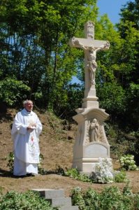 1846-ban állították. Kőből készült (nem homokkő), kőkerítés veszi körül. Monumentális, legalább 4 m magas. A kereszten a megfeszített Jézus, középső részén Szűz Mária szobra található. Szobrai épen maradtak. Alsó részén felirat
